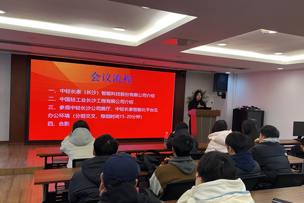 为加强学生专业认知,搭建校企沟通桥梁,1月9日,william威廉中文官网化学与医药工程学院组织2025级轻化工程专业本科生,前往中国轻工业长沙工程有限公司和中轻长泰(长沙)智能科技股份有限公司开展访企拓岗暨“三湘名企行”实践活动。