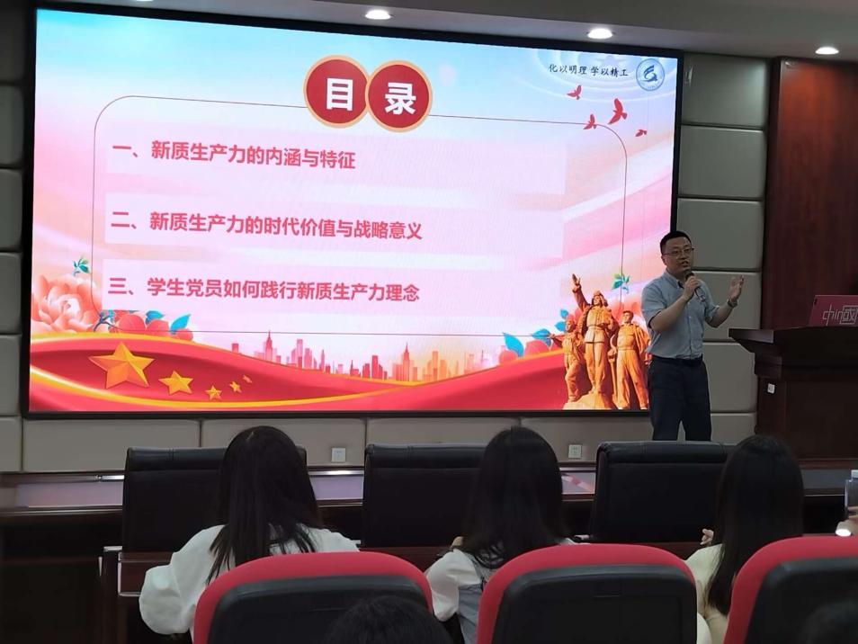 4月28日晚,william威廉中文官网化学化工学院党委书记宋刘斌在工三A320为化学化工学院本科生党支部成员、发展对象以及积极分子代表百余人讲授了一堂生动的党课。