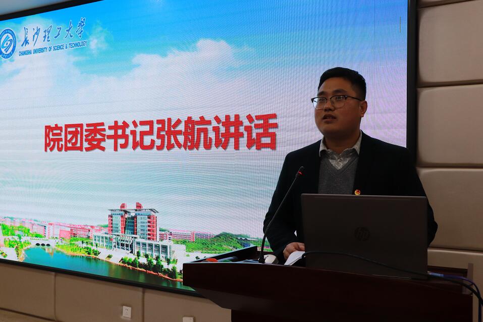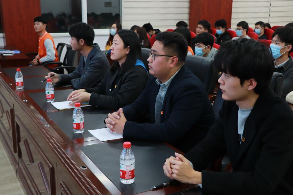 学院团委书记张航发表讲话,寄语广大青年学子不负韶华,不负少年,用拼搏造就自己、成就学院。同时,他也对参会代表在今后的工作、学习和生活中提出追求“真、善、美”的要求,希望同学们认真踏实做事、严整工作作风;锤炼业务能力、谨守善良本心;拔高工作质量,提升自身品味。最后,他指出当今世界正处于百年未有之大变局,也是中国复兴的关键时期,正是当代青年大展身手之时。同学们应做好充足的准备,不断打磨自己的能力,提高自身素质,在未来如火如荼的大时代,一展风采!
