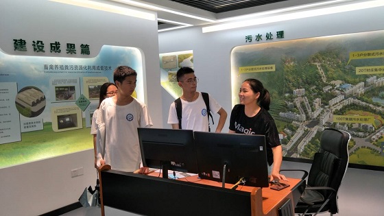 中联全环境智慧运营中心热情接待了实践队员,并派专人带领实践团成员参观汉寿·中联全环境智慧运营中心,为队员们具体介绍了汉寿县的环境治理文化和垃圾分类合作项目。首先实践团在大厅观看汉寿县环境治理宣传视频,作为重要的楚文化传承地和沧浪文化的发源地,承载深厚历史底蕴的汉寿县一向重视环境治理,力求打造“鸟语花香,生态宜居”的人居环境,而垃圾分类更是现阶段城乡一体化建设的工作重心。