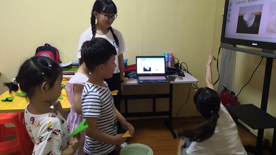 参与此次课堂的孩子为该托管中心即将升入一年级的孩子。实践队员首先将同学们分为两组,鼓励同学们做自我介绍,有几个性格活泼的孩子立马举高了手,“老师,我先,我先。”而几个性格腼腆的孩子也在实践队员的鼓励下勇敢展示自我。接着老师通过播放垃圾分类趣味视频导入课堂,有趣的视频极大地激发了同学们的学习心趣,然后实践队员使用PPT简单介绍垃圾分类标准和常见垃圾的分类,同学们都十分认真,回答问题积极踊跃。随后实践队员通过“垃圾投进趣”趣味游戏来帮助同学们巩固垃圾分类知识,实践队员在纸飞机上写上垃圾名称,用塑料盆做垃圾桶,两组分别将纸飞机投入垃圾桶,两组竞赛,最后比分较高的一组获得了实践队员准备的奖品——彩笔,同时实践队员为每一位同学都准备了纪念品——环保笔袋和扇子。课程结束后小朋友们还与实践队员进行了合影留恋,并纷纷表示以后在家也要与爸爸妈妈一起垃圾分类。