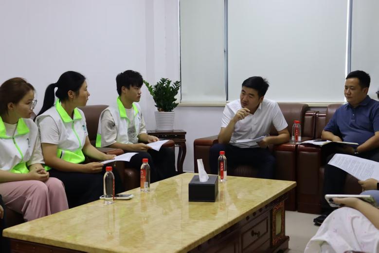 随后,团队到望城经开区铜官片区区政府,与安全部工作人员开展访谈。被问及 “环境管理核心重点”,工作人员直言:“聚焦环境应急防控体系建设、无异味园区打造,抓好污水监管、排水管理,推进地下水试点,多维度守好生态底线。”这场访谈为团队打开环保化工工作新视角,让 “绿色减排” 认知从企业生产延伸至系统性治理维度。