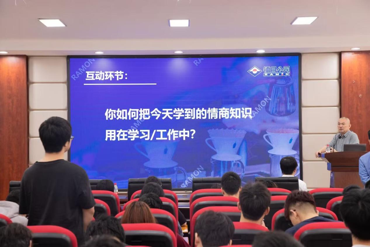 在主题分享环节,田陆结合二十余年企业管理经验,以生动案例解析情商在职业发展中的核心作用。他指出:“职场沟通的本质是建立信任,需把握倾听、共情与精准表达三大要素。”通过剖析“跨部门协作冲突化解”“客户关系维护”等真实场景,田陆深入阐释了情绪管理、团队协作及矛盾处理的技巧,并寄语学生:“专业知识是基石,但情商与软实力才是职业腾飞的双翼。”