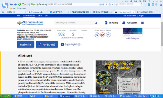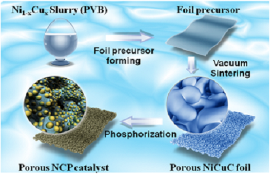 近日,william化学学院青年博士喻林萍副教授在化学-物理化学国际顶级期刊《ACS Catalysis》(影响因子:12.22)上发表了题为“In situ growth of Ni2P-Cu3P bimetallic phosphide with bicontinuous structure on self-supported NiCuC substrate as an efficient HER electrocatalyst”的科研论文(全文链接:https://doi.org/10.1021/acscatal.9b00494),首次报道了自支撑双金属磷化物多孔复合材料的设计制备及其在电催化析氢等能源转换方向的研究与应用。这种新型Ni2P-Cu3P/NiCuC复合材料体系具有以下方面的优势:1)采用新型的多孔合金自支撑纸型膜NiCuC,与商业泡沫镍相比具有更小的平均孔径(0.5~5.0 μm),更大的比表面积以及更好的支撑强度等特点;2)磷化物过渡金属源直接由多孔基底材料NiCuC提供,不再依赖传统合成方法中的中间产物(过渡金属氧化物、氢氧化物等);3)磷化物Ni2P与Cu3P形成的双连续相晶体颗粒组成可由基底材料的金属含量控制,可以充分追溯双金属磷化物之间的协同电催化作用。此复合材料体系为进一步扩展过渡金属磷化物(TMPs)电催化方面的应用提供了可能性,为电解水制氢高性能阴极材料的组分选择和结构设计提供理论依据,同时为清洁能源的生产和可持续发展拓宽了新思路。