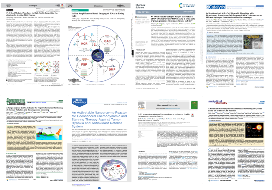 近五年来,在国家杰青、长江学者杨荣华院长的带领下,化学科学建设从以下多个方面取得重要进展:(1)注重师资和团队的建设。通过高水平师资力量的外部引进和内部培养,充分发挥青年教师的科研能力和潜力,形成既有特色又交叉融合的科研梯队,已逐步形成“荧光成像”、“细胞化学”、“电化学传感”、“电池材料化学”、“有机方法学”、“高分子聚合物化学”、“环境化学”、“电力化学”等科研团队,并展现出良好的发展势头。(2)注重人才培养。基于师资建设,努力探索针对本科生和研究生的个性化创新培养模式,从思想上、生活上、专业学习上引导学生形成正确的价值观和人生观,培养有能力有素养的爱国青年人才,近年来本科生和研究生就业率稳居学校前列,毕业生深受用人单位的喜欢。(3)注重学科平台的建设。在发展好原有省部级重点实验室和工程中心的基础上,2019年新成立了“细胞化学湖南省重点实验室”,采购或搭建了高水平硬件设施,如高分辨核磁、透射电子显微镜、原子力显微镜、激光共聚焦显微镜、流式细胞分析仪、小动物成像系统、细胞培养室等。(4)注重高水平成果的产出。主持了国家自然科学基金重点项目、国家重大科研仪器研制分项目、湖南省杰出青年基金和优秀青年基金等重要科研课题,获得了湖南省自然科学一等奖、二等奖等,科研成果在国际顶级期刊上不断报道。其中,省优青卿志和博士连续在Angewandte Chemie、Chemical Science、Environmental Science & Technology发表荧光成像与细胞化学分析方面的最新结果,青年骨干喻林萍博士在ACS Catalysis发表新型多孔复合材料及其电催化析氢研究成果,省杰青曾巨澜博士在储能材料物理化学方面发表了学院最早的一篇ESI高被引论文,还有很多成果在国内卓越期刊如CCS Chemistry、Science China Chemistry、Chinese Chemical Letters等发表。而且,近五年来化学学院的科研成果转化数量和进校经费累计稳居学校最前列。(5)注重学术交流。近五年,化学学院先后邀请举办院士、长江学者、国家杰青、国家优青和国外学者等高层次学术讲座100余人次;学院教师参加国内外学术会议200余人次,并受邀作学术报告40余次。并且,化学学院还成功主办了2015年湖南省分析化学学术研讨会、2018年湖南省化学生物前沿论坛等大型学术会议;同时,院内每周定期举办青年教师学术沙龙系列活动,并邀请校内外优秀青年教师不定期开展学术讨论。总之,化学学院活跃的学术氛围、高水平的学术交流极大地促进了化学学科的建设与发展。