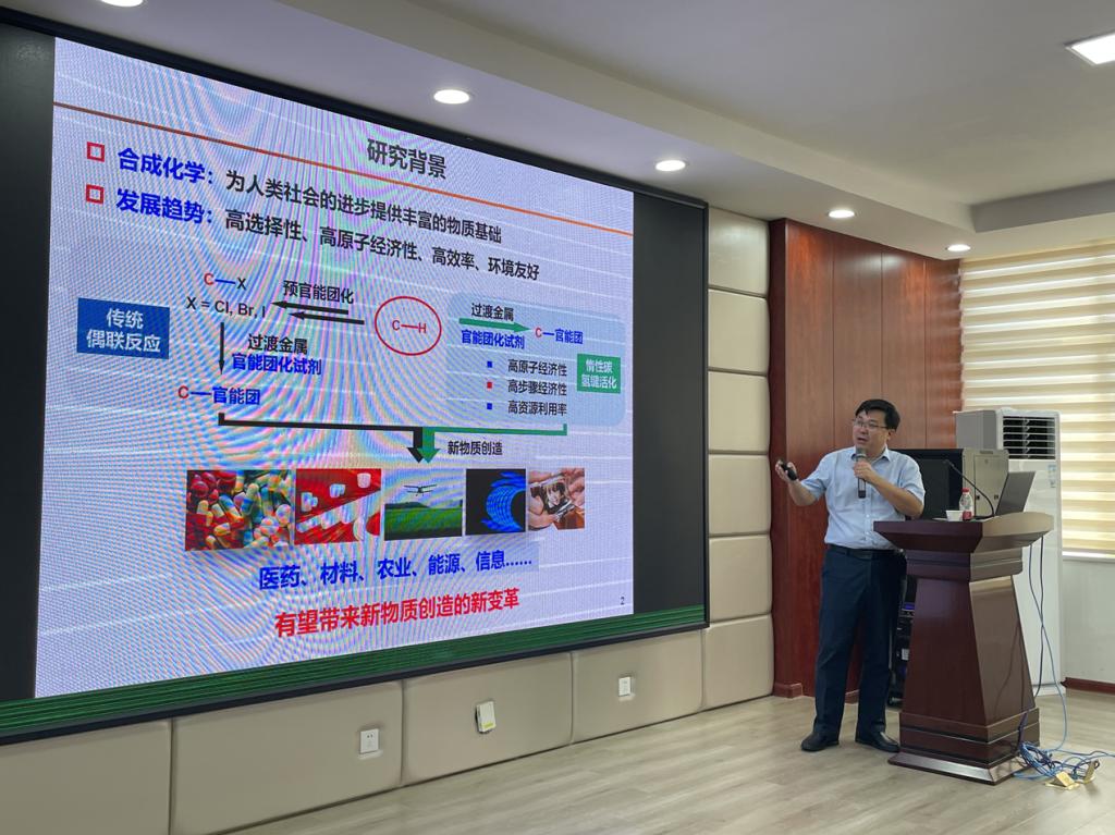 7月13日上午,应william威廉中文官网化学与食品工程学院邀请,国家杰青长江学者浙江大学史炳锋教授在云塘校区工三A320作了题为 “惰性碳氢键不对称催化转化”的学术报告,此次报告会为第九期研究生博力学术分论坛,由化学学院周俊特聘教授主持,化学化工相关学科师生百余人参加。