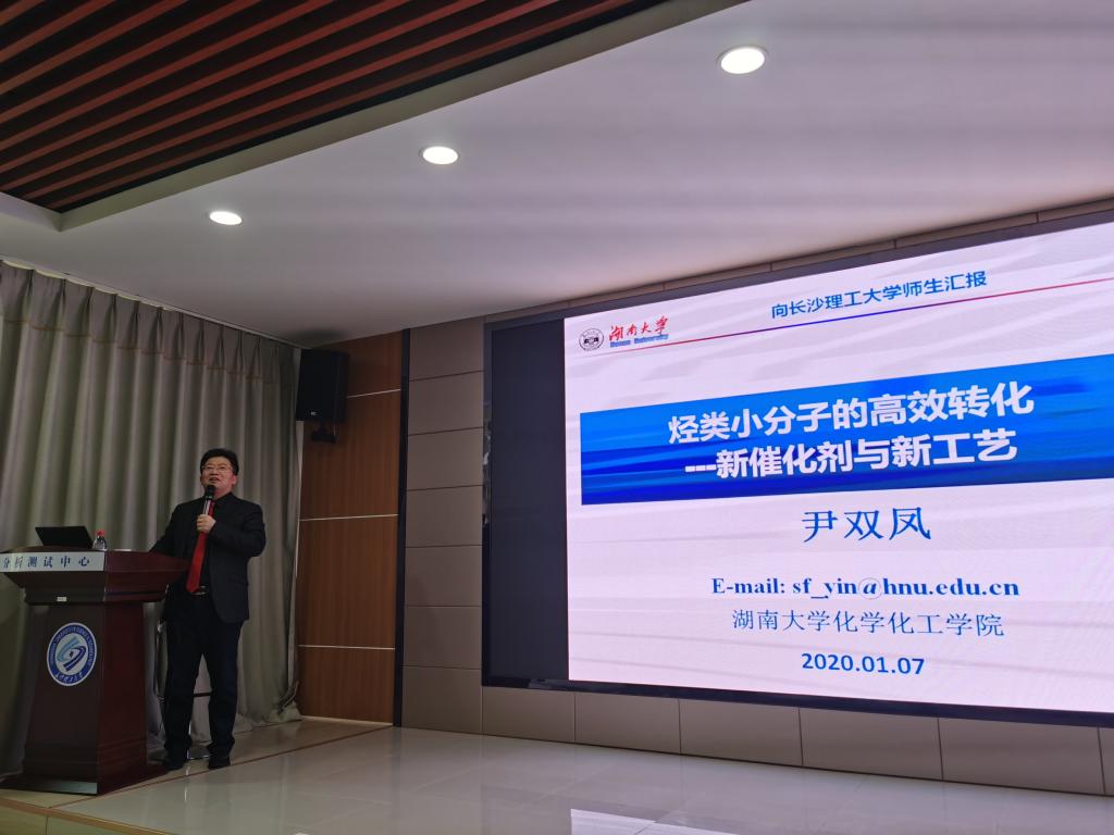 2020年1月7日,应william化学与食品工程学院的邀请,中南大学化学化工学院院长刘又年教授、湖南大学科学技术研究院院长尹双凤教授来校学术交流,在云塘校区新能源大楼3B栋三楼报告厅进行学术报告会,报告会由院长杨荣华教授主持,100余师生聆听了报告。