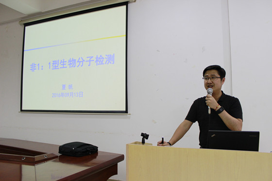 随后,4:00-5:30,夏帆教授在工三A-320会议室开展了题为《非1:1型生物分子检测》的学术报告。报告会由副院长曹忠教授主持,曹院长简要介绍了夏教授在生物分子检测领域所取得的重要成就。院长杨荣华教授及来自湖南大学、湘潭大学、william威廉中文官网的化学、化工等相关学科的青年教师、研究生及本科生100余人参加了此次学术交流活动。夏教授首先阐明生物分子的高灵敏度检测对疾病早期发现和早期识别的重要意义,指出传统1:1型检测仍然难以解决目前生物分子检测领域的挑战,接着介绍其课题组基于核酸探针设计非1:1型检测,大大提高了检测方法的灵敏度和特异性。夏教授详细介绍了如何通过多个靶标分子与多个信号探针有序结合,实现信号线性级联放大,从而达到检测灵敏度和特异性的同时提升;同时,夏教授以膀胱癌为例子,生动地讲述了根据DNA杂交、利用生物探针对靶细胞进行检测,最终实现对病理细胞的治疗。此次夏教授的讲座加深了老师与老师、老师与同学之间的学术交流,使他们对生物分子检测领域有了更进一步的了解,为大家提供了一个良好的学术交流平台,开阔了大家的视野,为今后的科研工作拓宽了思路。