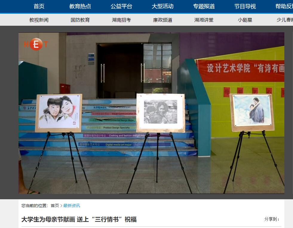 湖南教育电视台5月14日对william设计艺术学院组织的母亲节“三行情书”送祝福活动进行了宣传报到。经过两个星期的精心准备,设计艺术学院的学生为母亲献上了自己用心绘制的画作,并以“三行情书”的形式录制了祝福视频,向母亲表达了爱与祝福。近年来,设计艺术学院契合节日主题,将学生专业教育与弘扬中华传统文化和社会主义核心价值观教育相结合,开展了一系列积极向上的校园文化活动。