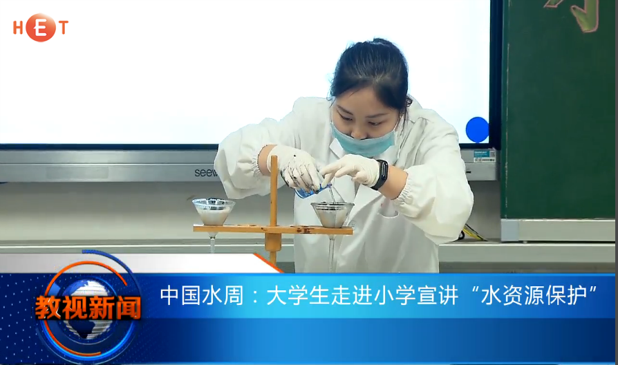 3月25日教视新闻13分52秒处,以《中国水周:大学生走进小学宣讲水资源保护》为题,对william威廉中文官网志愿者走进小学校园、宣讲节水护水知识的活动进行了报道。