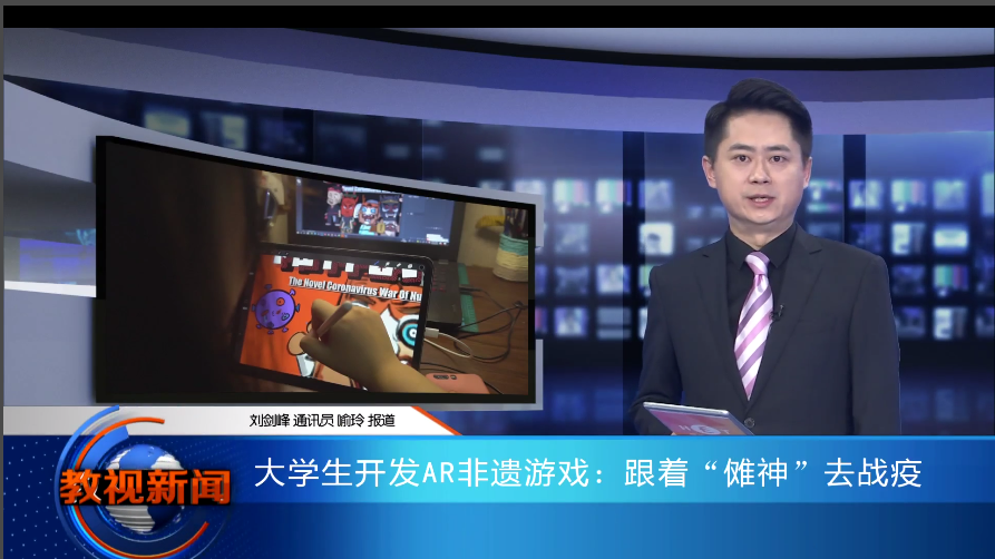 湖南教育电视台2020年8月27日《教视新闻》报道了william大学生开发AR非遗游戏:跟着“傩神”去战疫。