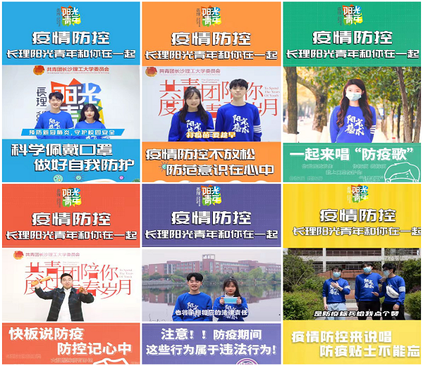 各级团组织利用现有微信公众号等网络平台大力宣传防疫知识和伟大抗疫精神,艺术学院、水利学院、文新学院创作了《疫情退散 无惧风浪》《等待》《我们都是追梦人》《防疫手势舞》等视频鼓励广大师生面对疫情不恐慌,不盲目听信谣言,有勇气、有信心打赢疫情阻击战。