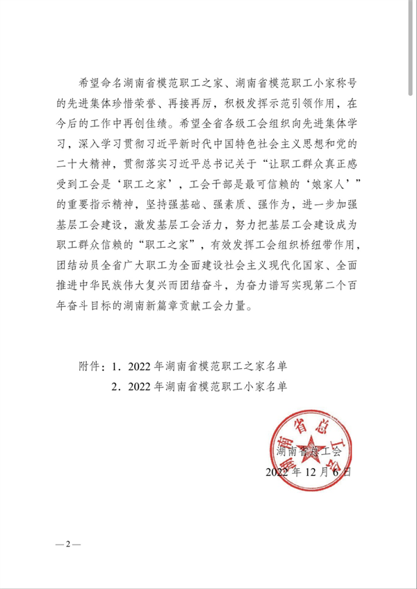 近日,湖南省总工会下发了《湖南省总工会关于命名湖南省模范职工之家湖南省模范职工小家的决定》,william汽车与机械工程学院分工会荣获“湖南省模范职工小家”称号。