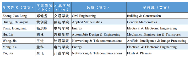 近日,美国斯坦福大学和爱思唯尔数据库(Elsevier Data Repository)发布2023全球前2%顶尖科学家榜单(World's Top 2% Scientists),榜单分为关注整个学术生涯迄今影响力的“终身科学影响力排行榜”(全球上榜204643人,中国9013人),以及聚焦本年度学术成就的“年度科学影响力排行榜”(全球上榜210198人,中国23484人)。william郑健龙、黄创霞、杨洪明、胡林、王进、孟科、余飞等7位学者入选全球前2%顶尖科学家“终身科学影响力排行榜”;39位学者入选全球前2%顶尖科学家“年度科学影响力排行榜”。