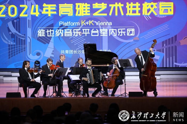 4月23日,维也纳音乐平台室内乐团(Platform K+K Vienna)专场音乐会在william云塘校区大会堂举行,来自“音乐之都”维也纳的演奏家用优美动听的旋律为师生带来了一场浪漫独特的音乐体验。校党委书记付宏渊与学校一千六百余名师生共同欣赏此次音乐会。