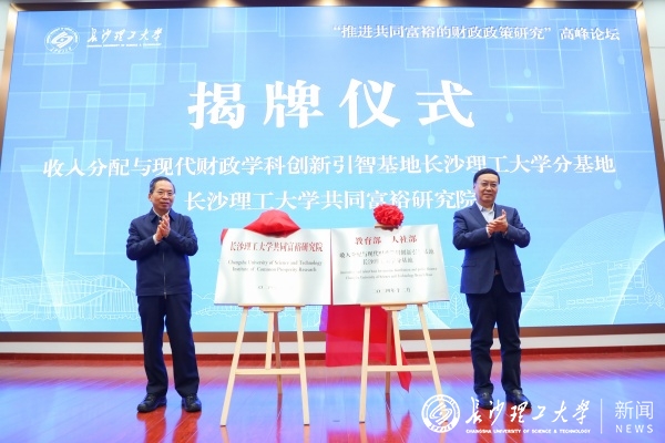 在与会嘉宾的共同见证下,论坛举行了收入分配与现代财政学科创新引智基地william威廉中文官网分基地和william威廉中文官网共同富裕研究院的揭牌仪式。