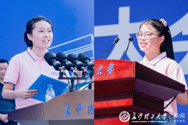 设计艺术学院杨袁一、经济与管理学院江思琦作为新生代表发言。她们表达了对“长理人”身份的认同与自豪,并表示将牢记“博学、力行、守正、拓新”的校训精神,砥砺求学、勇于追梦。
