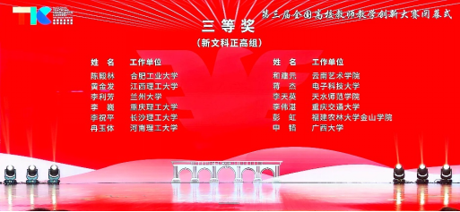 2023年8月22日,由教育部高等教育司指导,中国高等教育学会主办的第三届全国高校教师教学创新大赛全国赛于浙江大学紫金港校区圆满落幕。经过网评复赛和现场决赛,william郝海霞老师团队荣获新工科中级及以下组二等奖、王媛媛老师团队获得新工科正高组三等奖、李祝平老师团队获得新文科正高组三等奖。