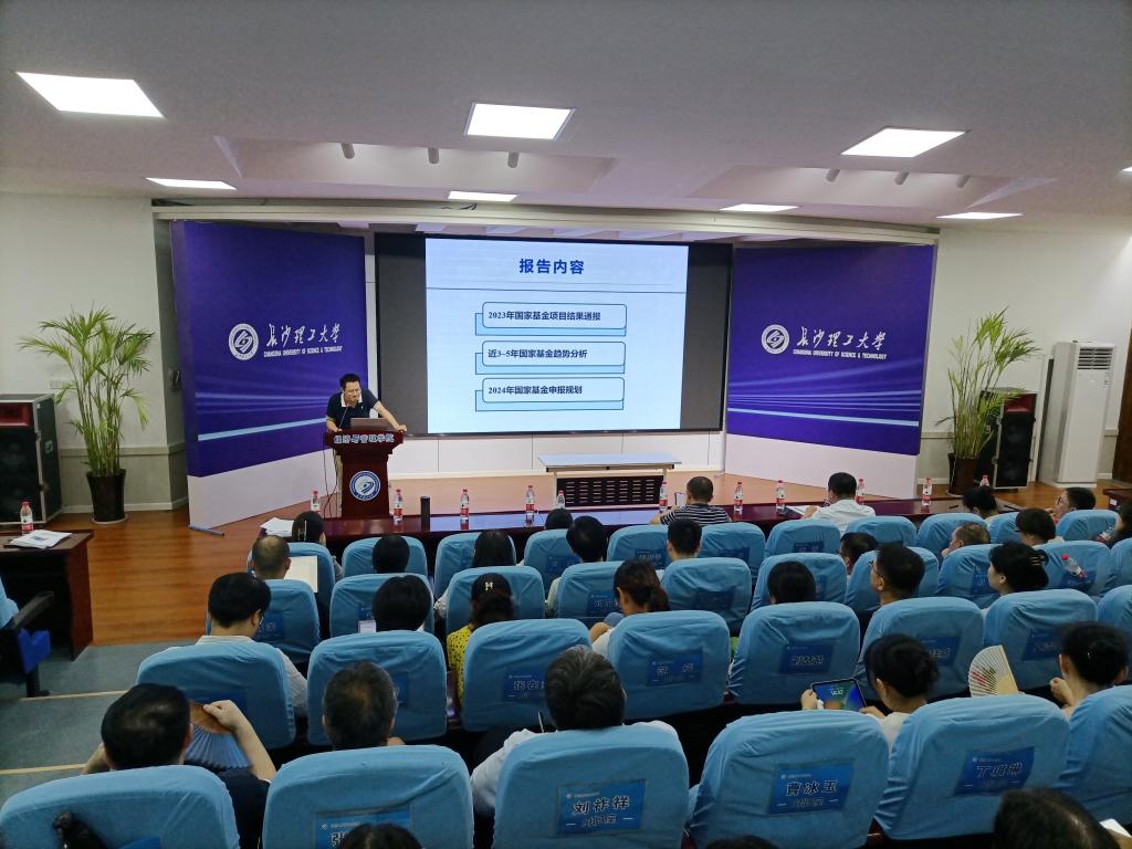 副院长张新华通报了学院2023年国家基金项目申报阶段性成果,对近3-5年国家基金项目立项趋势进行了分析,并对2024年度国家基金项目申报工作作出总体部署。