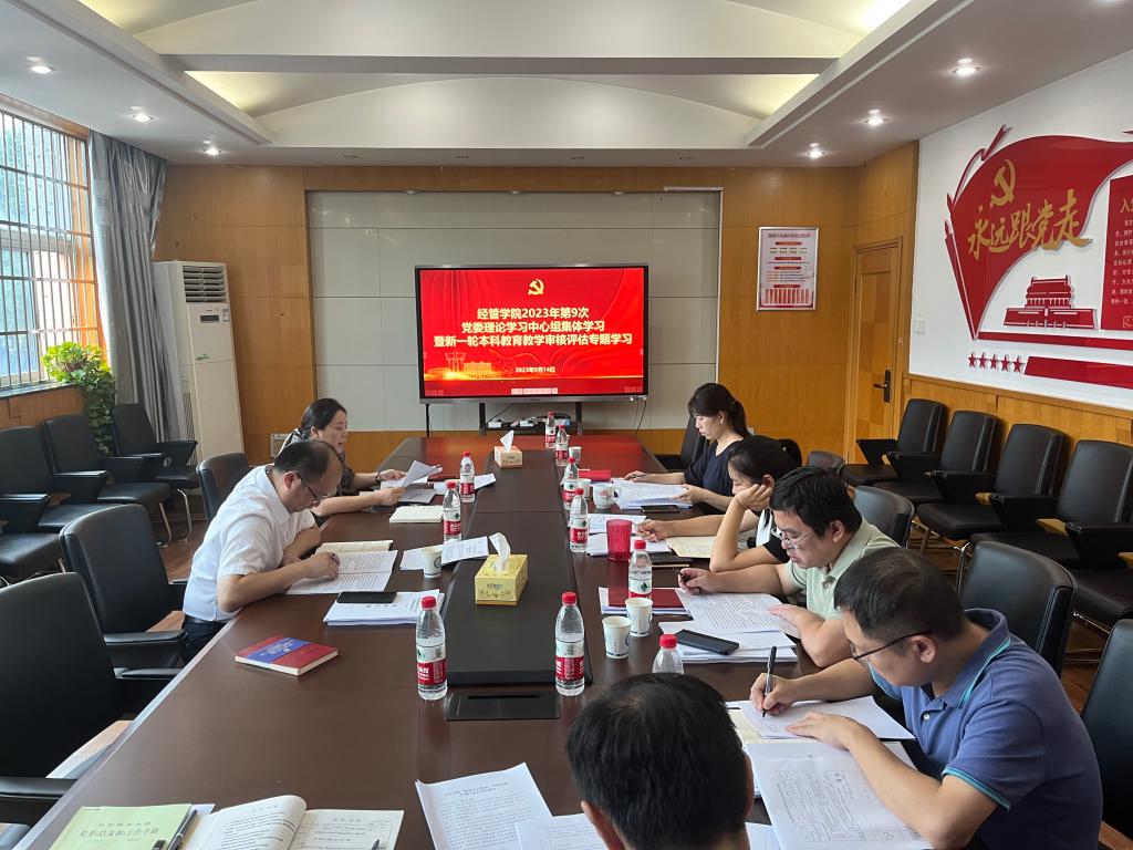 9月14日,经管学院党委理论学习中心组在金盆岭校区办公大楼307会议室开展2023年第9次集体学习暨新一轮本科教育教学审核评估专题学习。院党委书记丁丹主持学习会,院党委理论中心组成员参加学习。