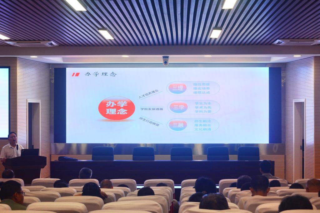 最后,邓崛峰从学院办学定位、办学理念、发展思路、工作思路、学院文化等五个方面阐述了对学院建设发展的思考,希望广大教师立足岗位,积极参与学院教育思想讨论,扎实工作,主动担当起自主培养创新型人才的时代使命,在服务国家战略和区域经济社会发展,助力学校决胜百强和学院高质量发展上展现新担当新作为。