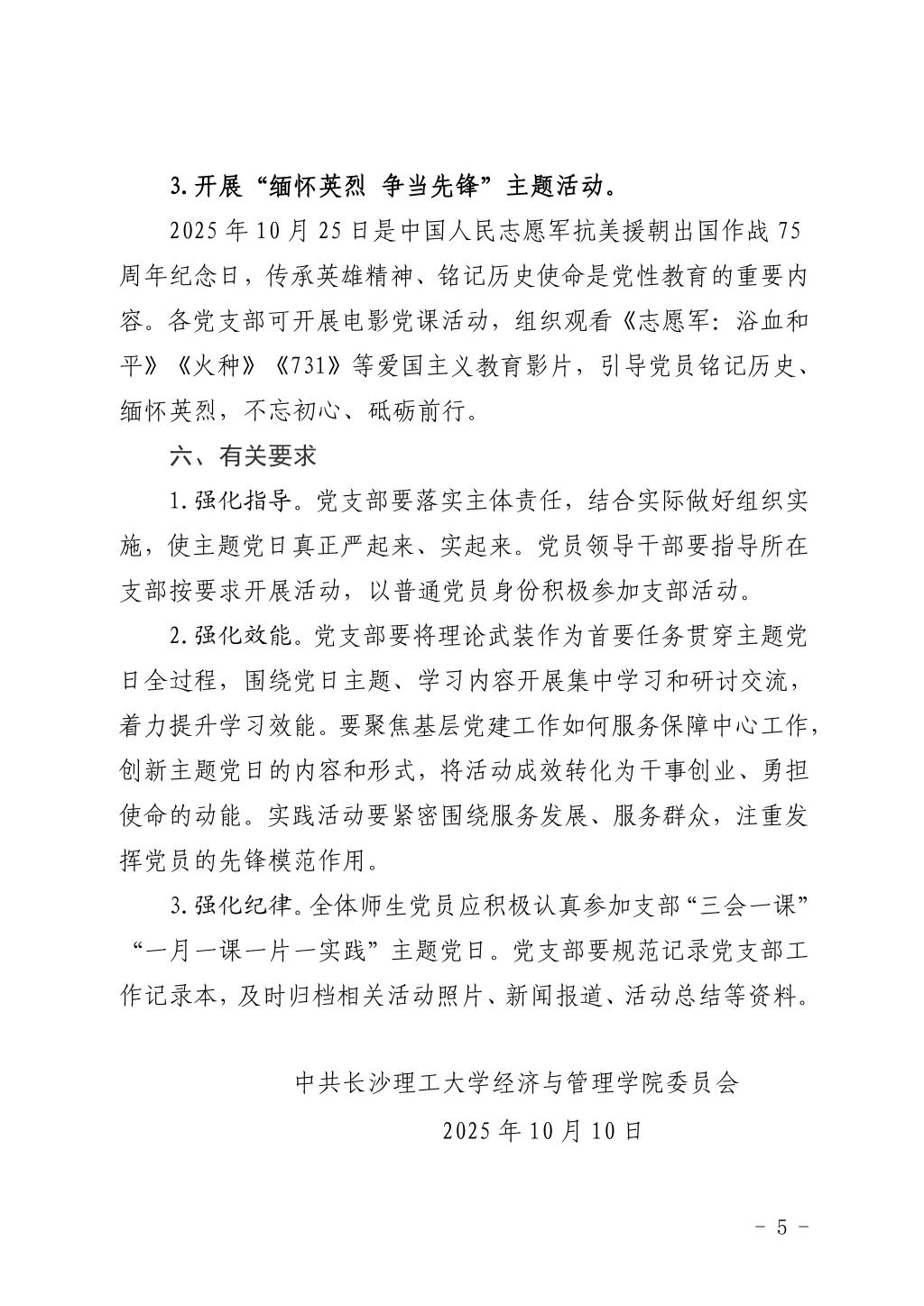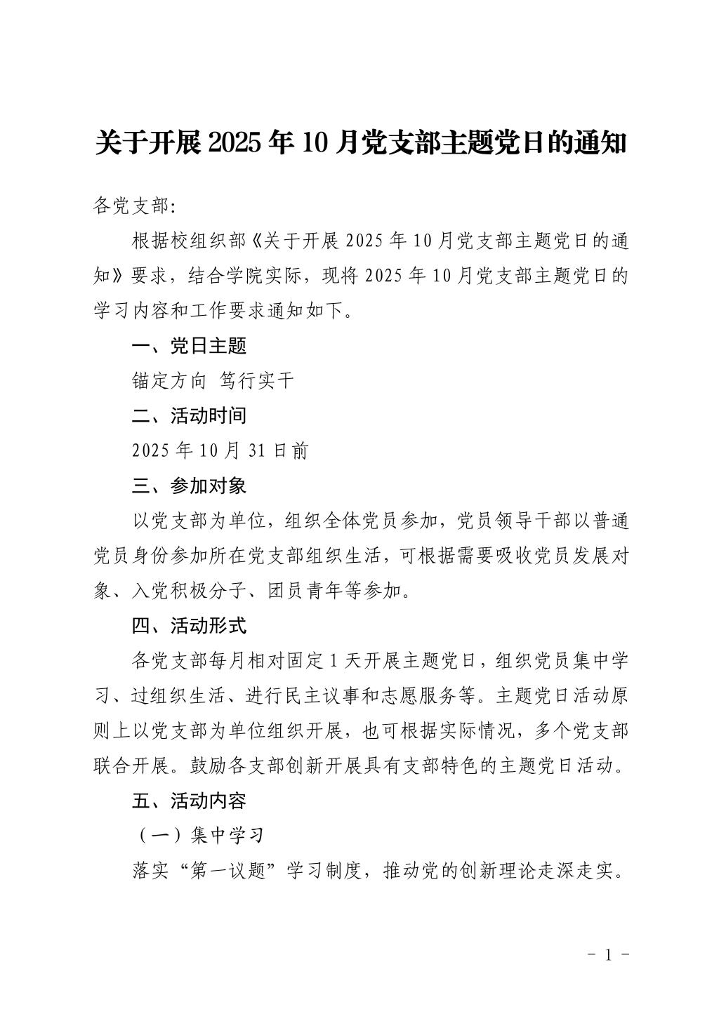 关于开展2025年10月党支部主题党日的通知