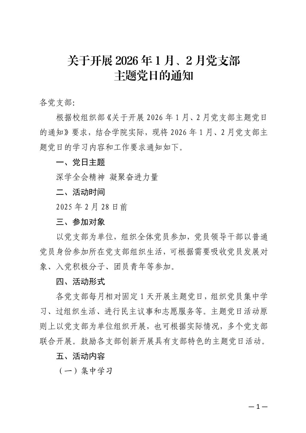 关于开展2026年1月、2月党支部主题党日的通知