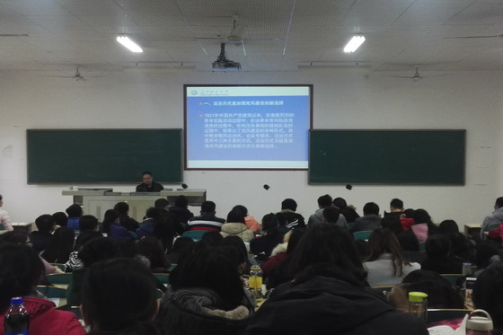 第一堂课,卿定文处长以“党风建设的法治化路径思考”为题为学员们授课,就十八大以来关于“全面建成小康社会、全面深化改革、全面依法治国、全面从严治党”的“四个全面”新战略,从思想理论层面向学生深入讲解和分析了要以法治思维和法治方法抓作风建设的既定主题,阐述了法治方式是加强党风建设的最新方式与最新选择,并提出“法治”作为社会主义核心价值观的重要组成内容,加强法治宣传教育和法治建设显得尤为重要,这不仅需要全社会增强法治意识、弘扬法治精神,更需要党员带头实践。卿定文处长以其十多年的工作经验,并结合十八大以来等一些时事系统而详细地分析党章的规定,结合他沉稳的语言风格激发了大家极大的兴趣。最后,卿定文处长不忘对在座学生给予殷切期盼,希望每位预备党员能早日成为一位合格的、优秀的中国共产党员。