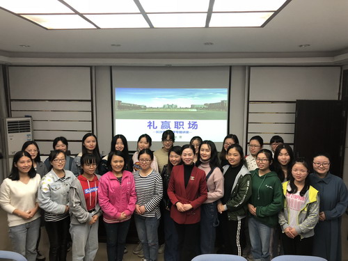 赵霏以什么是礼仪的真谛为切入点与台下同学进行游戏互动,从而引出,礼的核心在于尊重,她以生命关系圈为例阐述家庭关系对职场上下级关系的深刻影响。接着赵霏以生动的图片及视频资料向同学们介绍了当今时代礼仪在职场中的重要性,她强调职场人士在正式场合要进行科学的形象管理,职场女性要注重服装搭配,仪容仪表规范得体,体态行为落落大方,了解个人形象在职场中的重要意义。赵霏告诉同学要灵活运用礼,在不同场合讲求礼仪的同时也要随机应变,并以“55387原则”告知学生立身处世三部曲:外貌品味、举止修养、内容学识。职场礼仪是企业形象、文化、员工修养素质的综合体现,只有做好应有的礼仪才能为企业在形象塑造、文化表达上提升到一个更高的位置。她希望同学们认真学习,提升修养,做最好的自己,迎接新工作的挑战。
