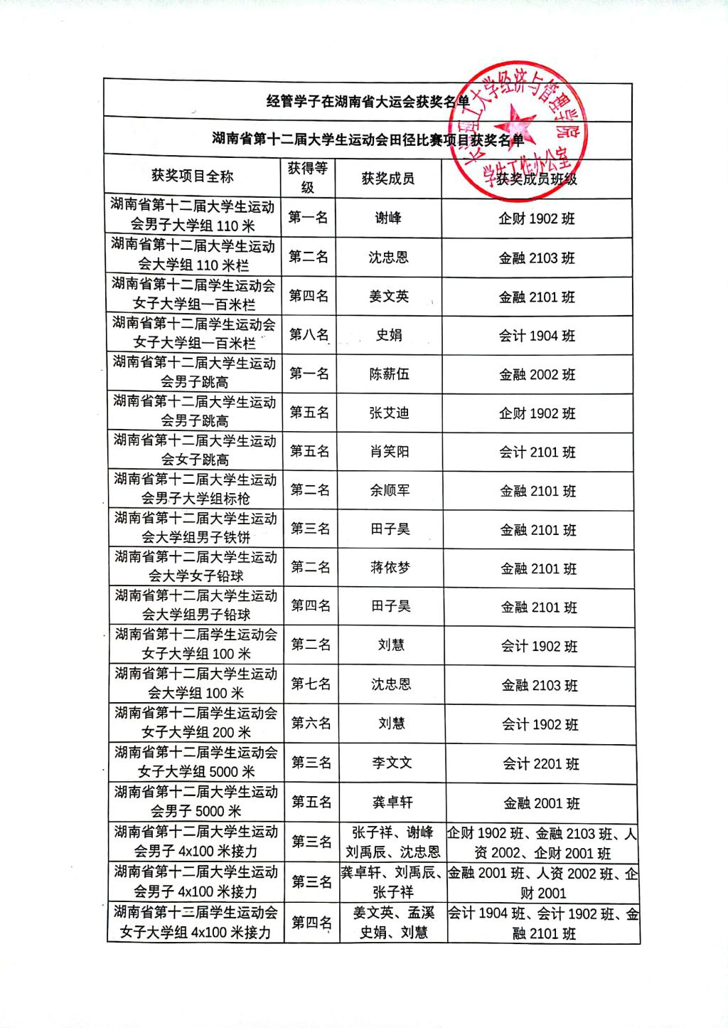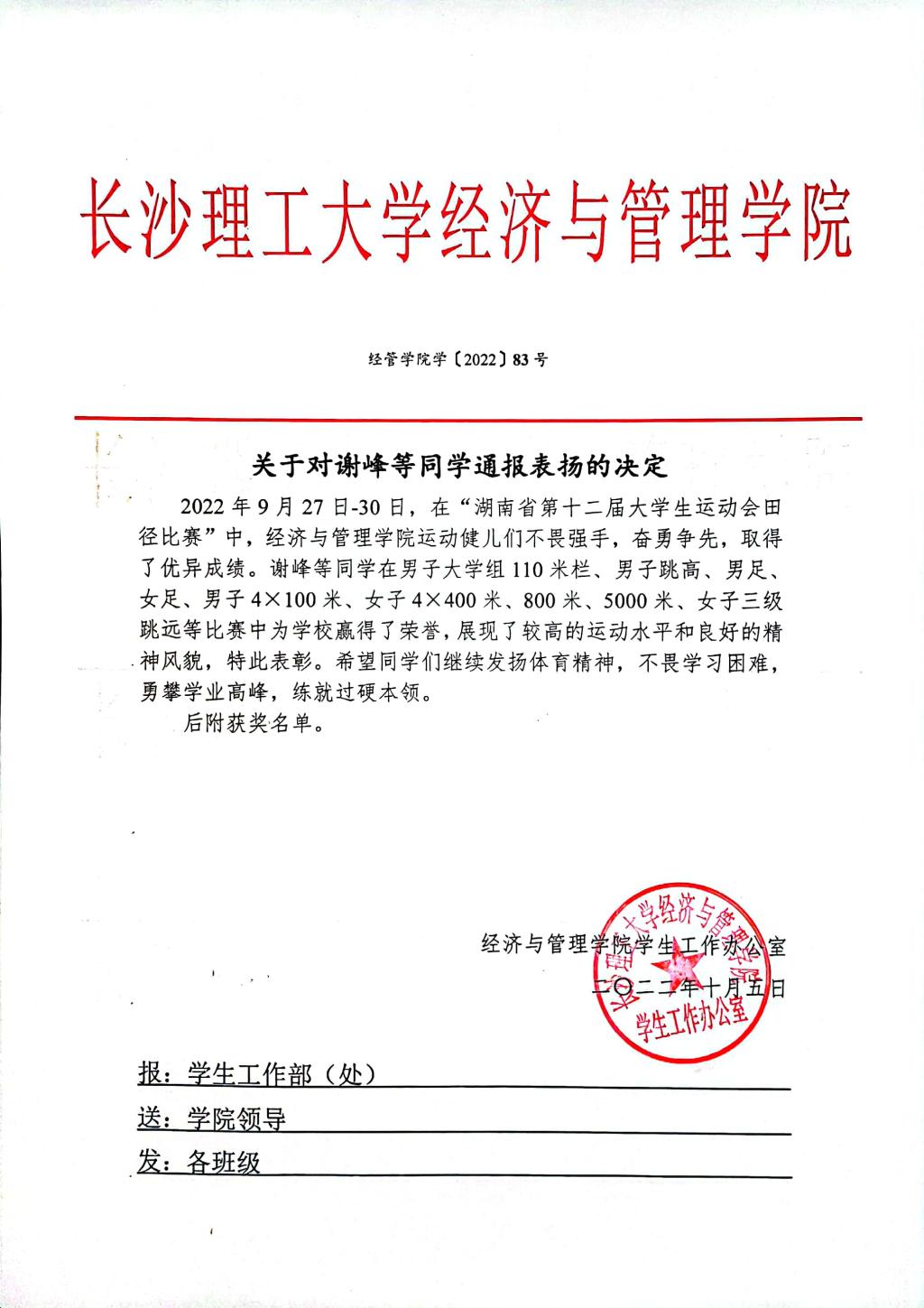 关于对谢峰等同学通报表扬的决定