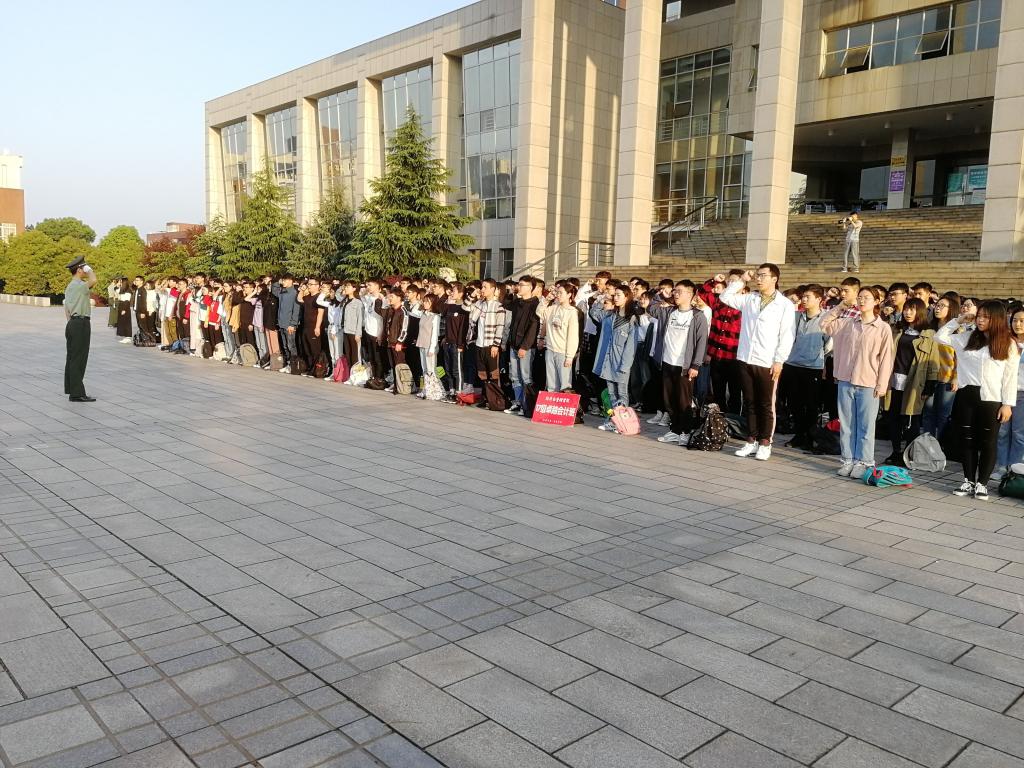 2019年4月8日早上6点55分,william威廉中文官网经济与管理学院在图书馆前举行了庄严隆重的升旗仪式。学院党委副书记涂道勇,17级辅导员肖翠老师及全体17级学子参加升旗仪式。