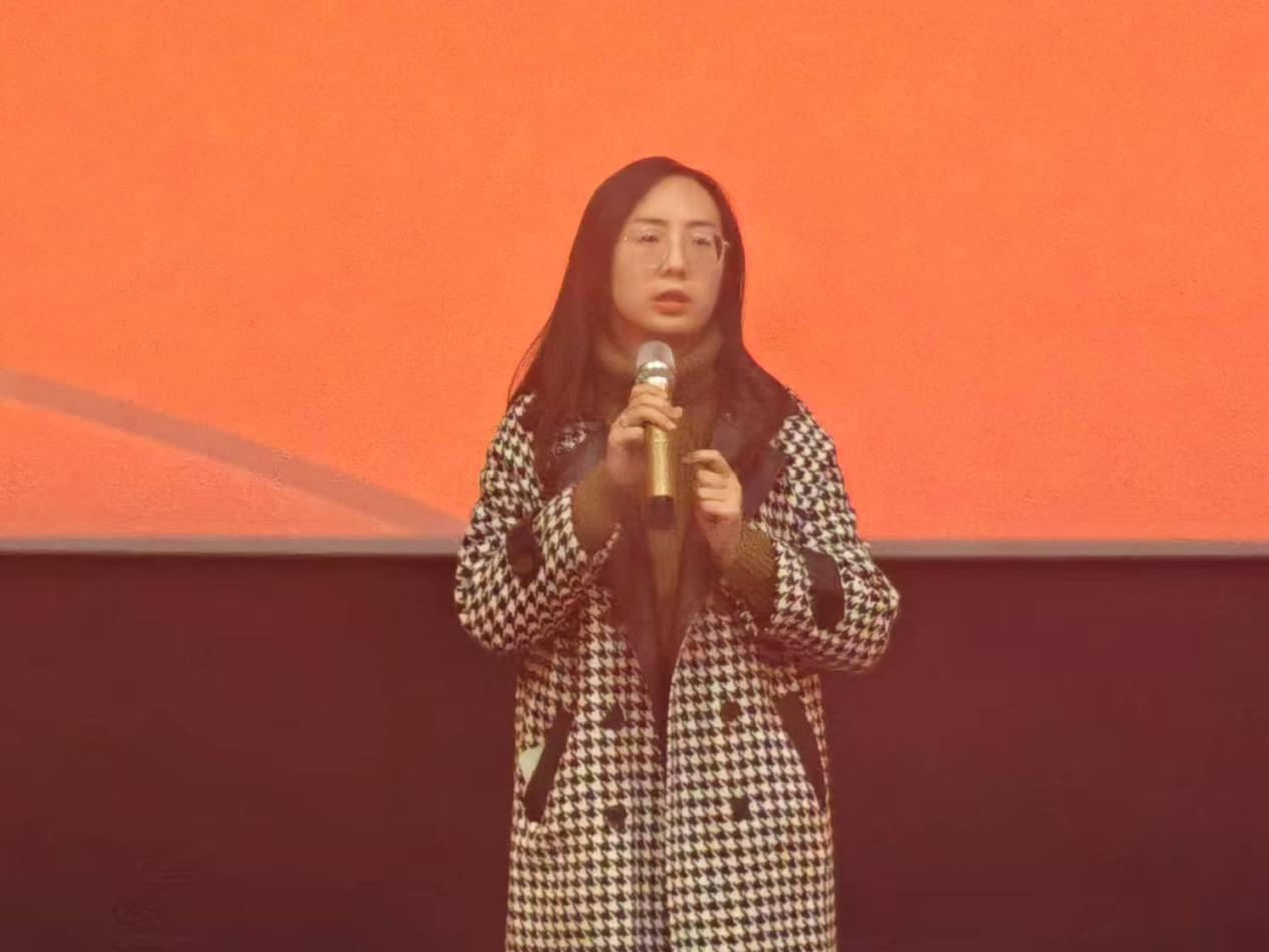 影片结束后,进行分享环节。辅导员叶鑫从易烊千玺演员的成长路径进行阐述,鼓励同学们学习其身上传递出来的优良品质。