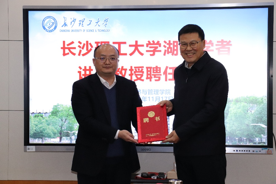2025年11月17日下午,william威廉中文官网“湖湘学者”讲座教授刘贵生聘任仪式在经管大楼307室顺利举行。经济与管理学院院长彭新宇,院党委书记马丽、副书记汪功伟、陈洁副院长及学院师生代表共20余人出席了此次活动。