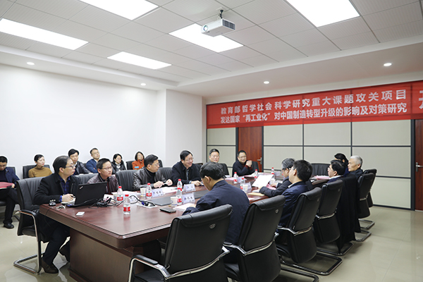3月17日上午,由我院副院长刘建江教授主持的2018年教育部哲学社会科学研究重大课题攻关项目《发达国家“再工业化“对中国制造转型升级的影响及对策研究》在文科楼C502举行开题报告。党委书记付宏渊发表讲话,副校长叶泽主持开题会。