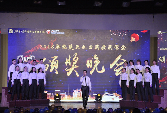 12月25日晚,经管学院第二届湘能楚天电力奖教奖学金颁奖晚会在金盆岭校区五教大礼堂隆重举行。湘能楚天电力集团执行总裁谭常训、人力资源总监刘正安、行政总监冯艳云一行,校团委书记陈曦、招生就业处副处长田向阳、研究生院副院长刘亚辉作为晚会特邀嘉宾出席,经管学院院领导、教师代表以及近千名研究生和本科生参加了本次晚会。