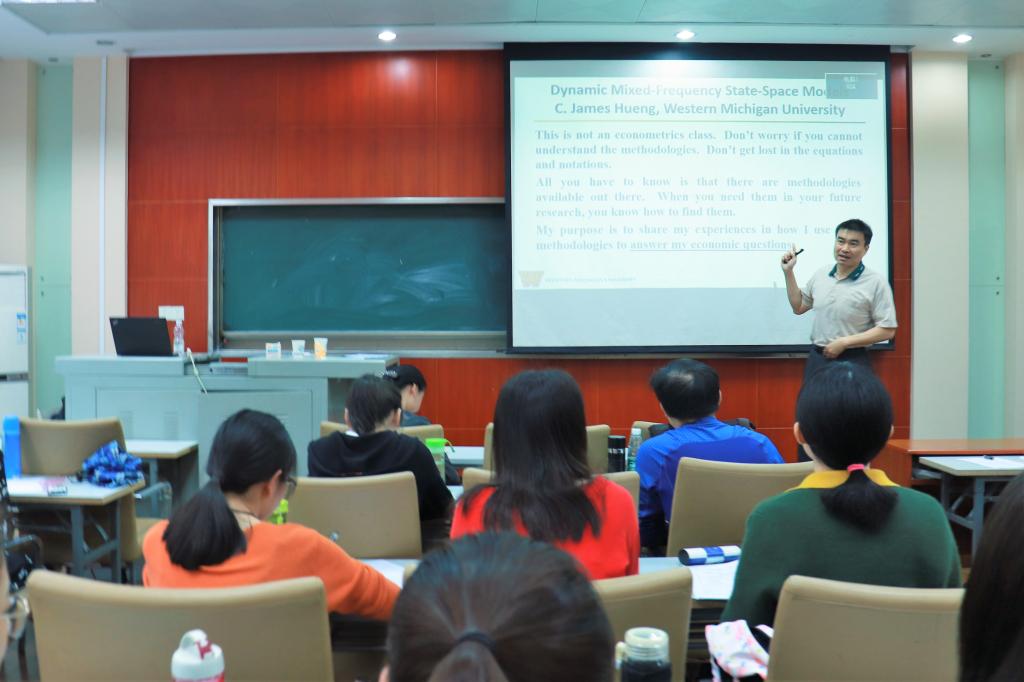 洪教授的讲解逻辑清晰、内容丰富、幽默风趣,再加上诙谐轻松的氛围,让在场的学生对动态混合频率状态空间模型有了一定的了解。