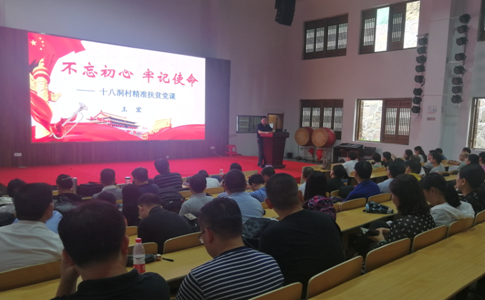 接着,王宏书记为大家讲授题为“不忘初心·牢记使命”--十八洞村精准扶贫的党课。王宏从“精准扶贫”之十八洞村实践;“精准扶贫”之金融助力;习近平总书记“精准扶贫”之重要论述的重大意义三个方面,对“精准扶贫”的提出、实施与时代价值意义进行详细讲解。