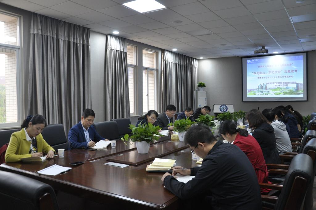 10月16日上午,经管学院党委中心组(扩大)在文科楼D202围绕“立德树人担使命、教育为民履职责”专题,开展主题教育第二专题集中学习。院党委书记王宏主持,院党委中心组成员及学院各党支部书记参加学习。校督导组陈克猛同志参会指导。