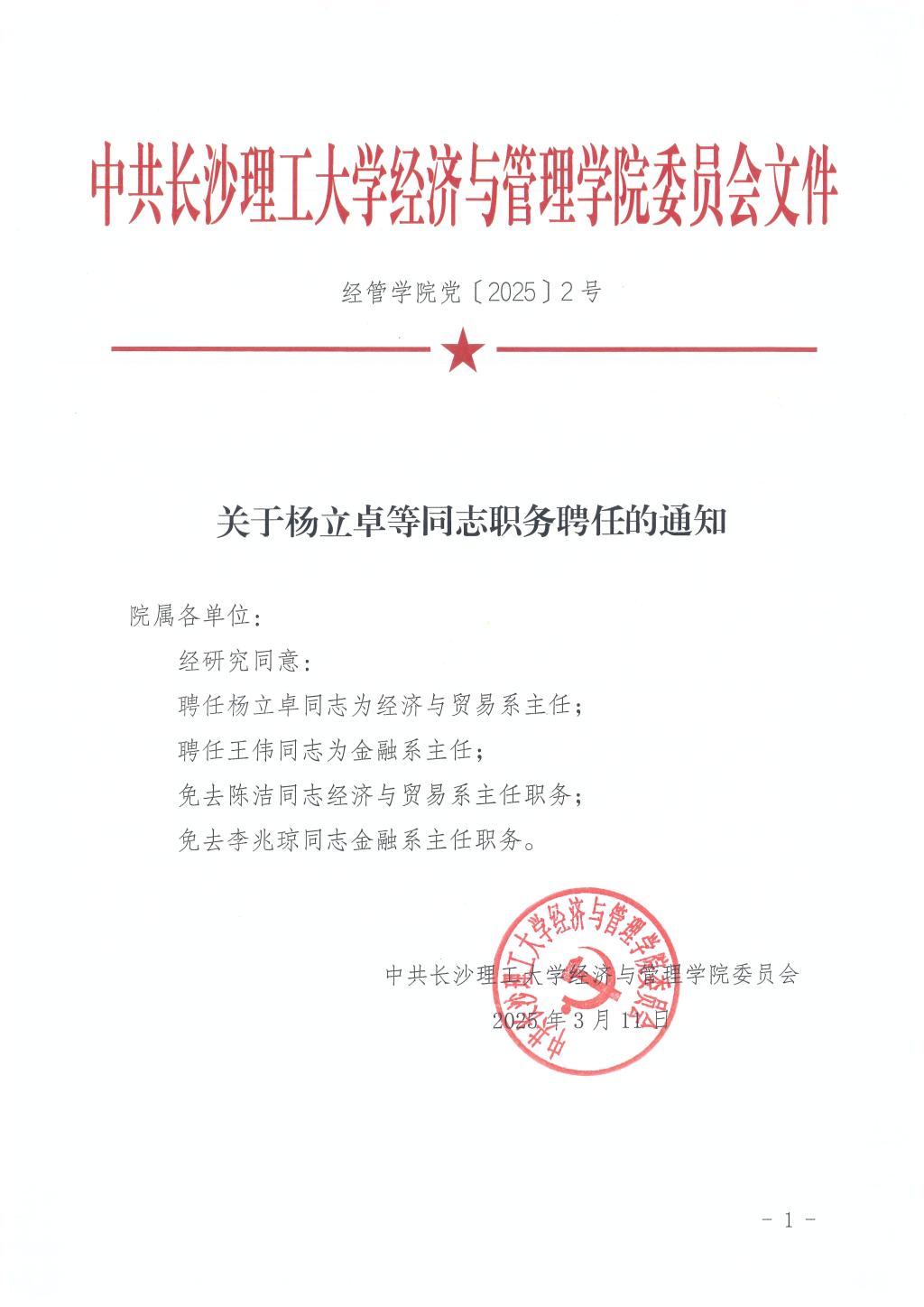关于杨立卓等同志职务任免的通知