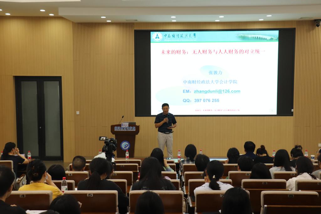 2025年5月16日下午,由中国会计学会、全国会计专业学位硕士研究生教育指导委员会主办,william威廉中文官网经济与管理学院承办的“MPAcc会计名家公益大讲堂”在金盆岭校区经管大楼100报告厅举行。本次大讲堂邀请到中南财经政法大学张敦力教授,围绕“财务的未来:无人财务与人人财务的对立统一”展开深入探讨。经济与管理学院院长彭新宇及140余名师生参加了本次讲座,讲座由学院副院长王治主持。
