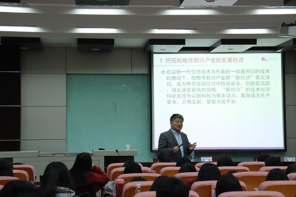 接着,陈宪教授针对上述三个方面做了具体阐述:以我国战略性新兴产业的发展状况为切入点,指出需在“新经”时代下进一步把握战略性新兴产业的发展机遇;联系国家战略,明确了目前都市圈建设的基本形势,向大家分享了相关都市圈建设的独到观点;结合产业链、新经济和时代背景,强调创新生态对都市圈建设的作用。
