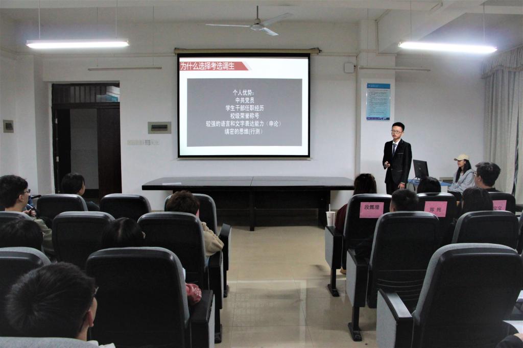 11月20日晚,经管学院文科楼D305举第九届职业生涯规划大赛学院选拔赛参加此次答辩活动的评委为学校招生就业处郑纯,学院就业专干王宝宝以及19级辅导员段懿珊。