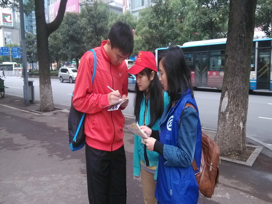经管学院分团委学生会青年志愿者协会自2014年11月1日起开展了由中国扶贫基金会发起的“善行100”活动,到目前为止,活动已进行了四个周末共7次,并在每次劝募活动中取得了良好成果。