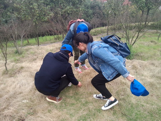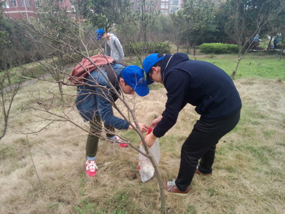 在进行了明确的分工讨论与任务布置后,全体成员分成两组分别沿云霞山东西两侧开始了本次大环保活动。各党建干部戴着经管学院志愿者的蓝色帽子,身体力行,躬身卷袖,仔细搜索着捡起每一片垃圾,散落的瓜子壳也不放过,充分发挥了党员干部的先锋模范作用。在大家将近一个小时的辛勤努力下,云霞山重新焕发出清洁美丽的光芒。