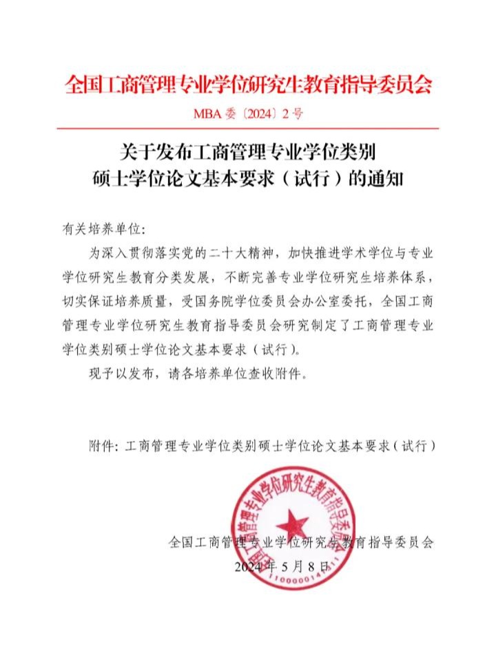 关于发布工商管理专业学位类别硕士学位论文基本要求(试行)的通知