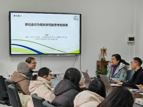 2025年12月16日(周二)上午9:00,在金盆岭校区经管大楼207室,对外经济贸易大学孙瑾教授应邀主讲金岭学术大讲堂第82期(2025年第36期),为我院师生带来题为“亲社会行为相关研究的理论思考和探索”的学术讲座。讲座由学院副院长何昊主持,我院师生近40人到场聆听。