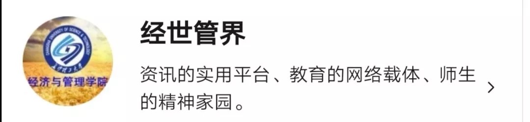 经世管界微信公众号是经管学院的官方微信公众号,对外是宣传学院各项活动的窗口,对内是经管学子的传话筒,一直以来都受到老师和同学们的支持与喜爱。