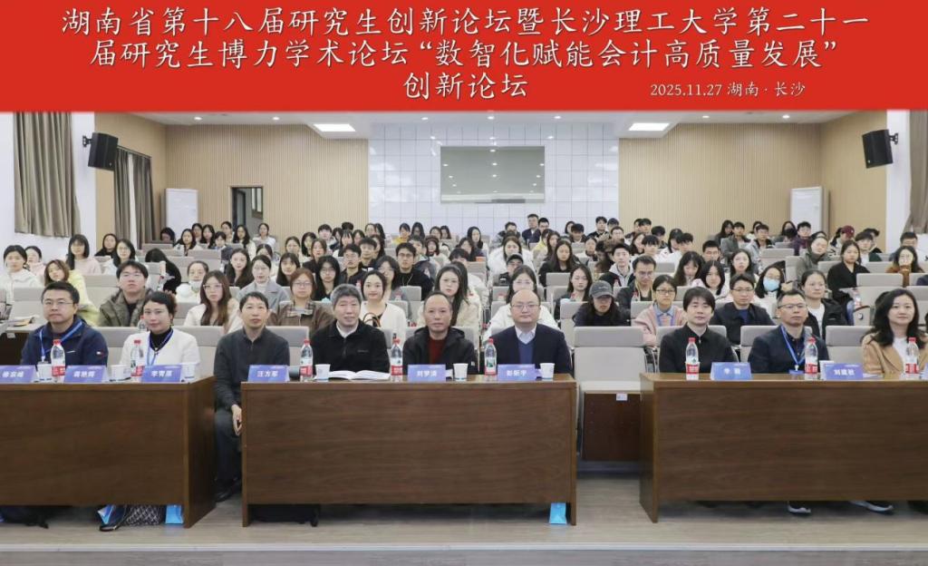 2025年11月27日,湖南省第十八届研究生创新论坛暨william威廉中文官网第二十一届研究生博力学术论坛“数智化赋能会计高质量发展”创新论坛在william威廉中文官网金盆岭校区隆重举行。本次论坛由湖南省教育厅主办,william威廉中文官网承办,来自国内各高校的专家学者以及william威廉中文官网师生近200人参加了本次论坛。