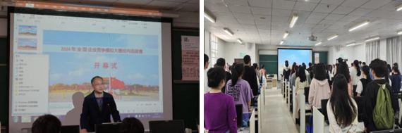 本次比赛由经济与管理学院企管系系主任唐文彬教授主持开幕仪式,他首先向参赛的团队代表强调了比赛的意义和价值,鼓励同学们通过比赛锻炼决策能力和分析能力,提升应对能力和团队协作能力。同时,他还强调了比赛的相关纪律,也强调了比赛重在参与、重在成长,希望所有团队在比赛中保持良好的精神状态,发扬团结友爱、互相帮助、取长补短、共同进步的精神。