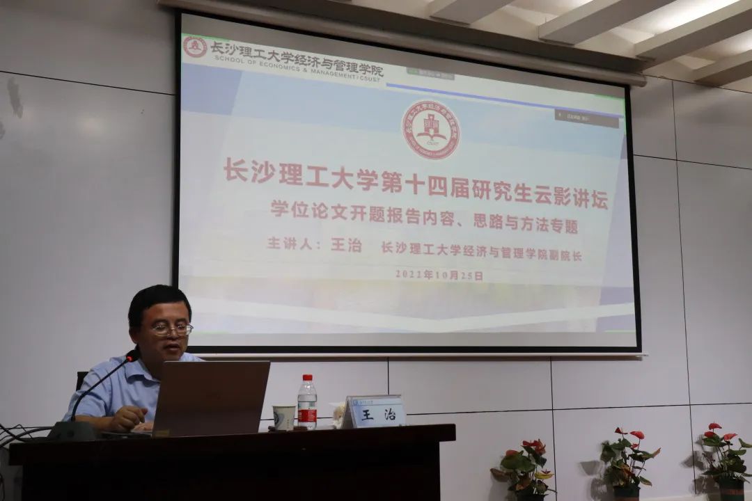 为全面提升我院研究生学术素养,针对性指导研究生学术论文、学位论文撰写,10月25日19:30我院于金盆岭校区12教200学术报告厅邀请了分管研究生工作的副院长王治教授为21级专硕研究生举办了一场“研究生学术素养提升专题”讲座,讲座采取线上线下结合的方式,经管学院21级全体专硕研究生参加,会议由研究生辅导员吴畏老师主持。
